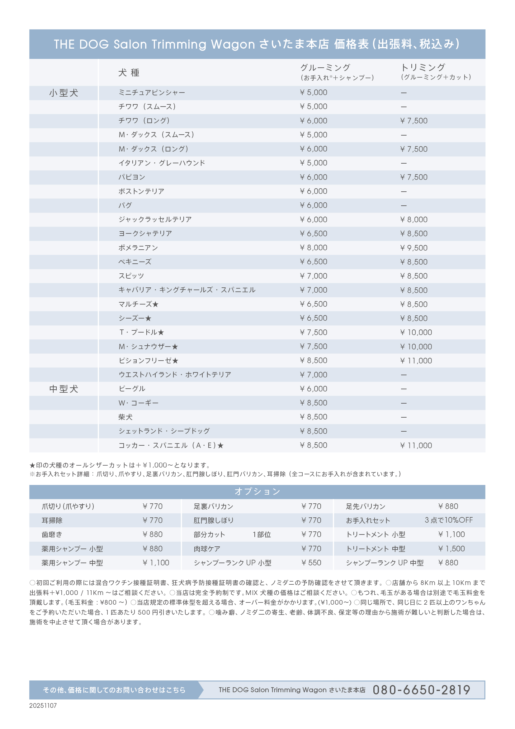 当日対応OK / 女性トリマー / 狂犬病ワクチン、混合ワクチン接種の証明書提示が必要 / 感染症対策