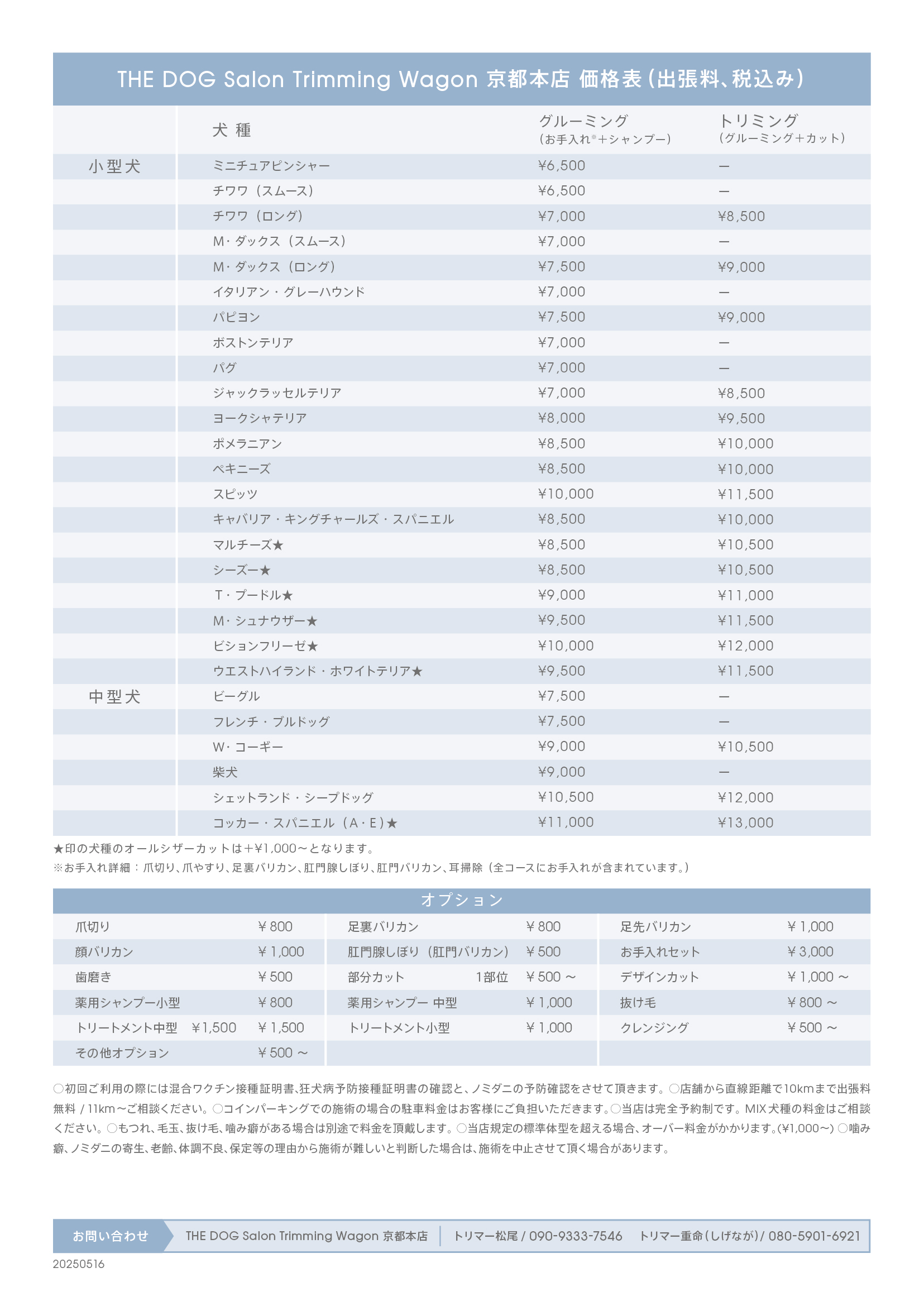 当日対応OK / 女性トリマー / 狂犬病ワクチン、混合ワクチン接種の証明書提示が必要 / 感染症対策